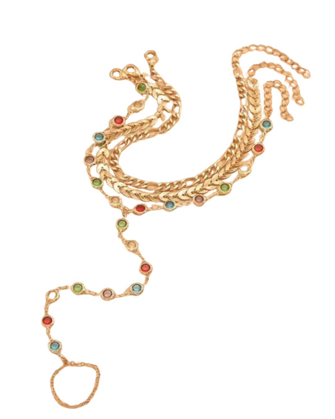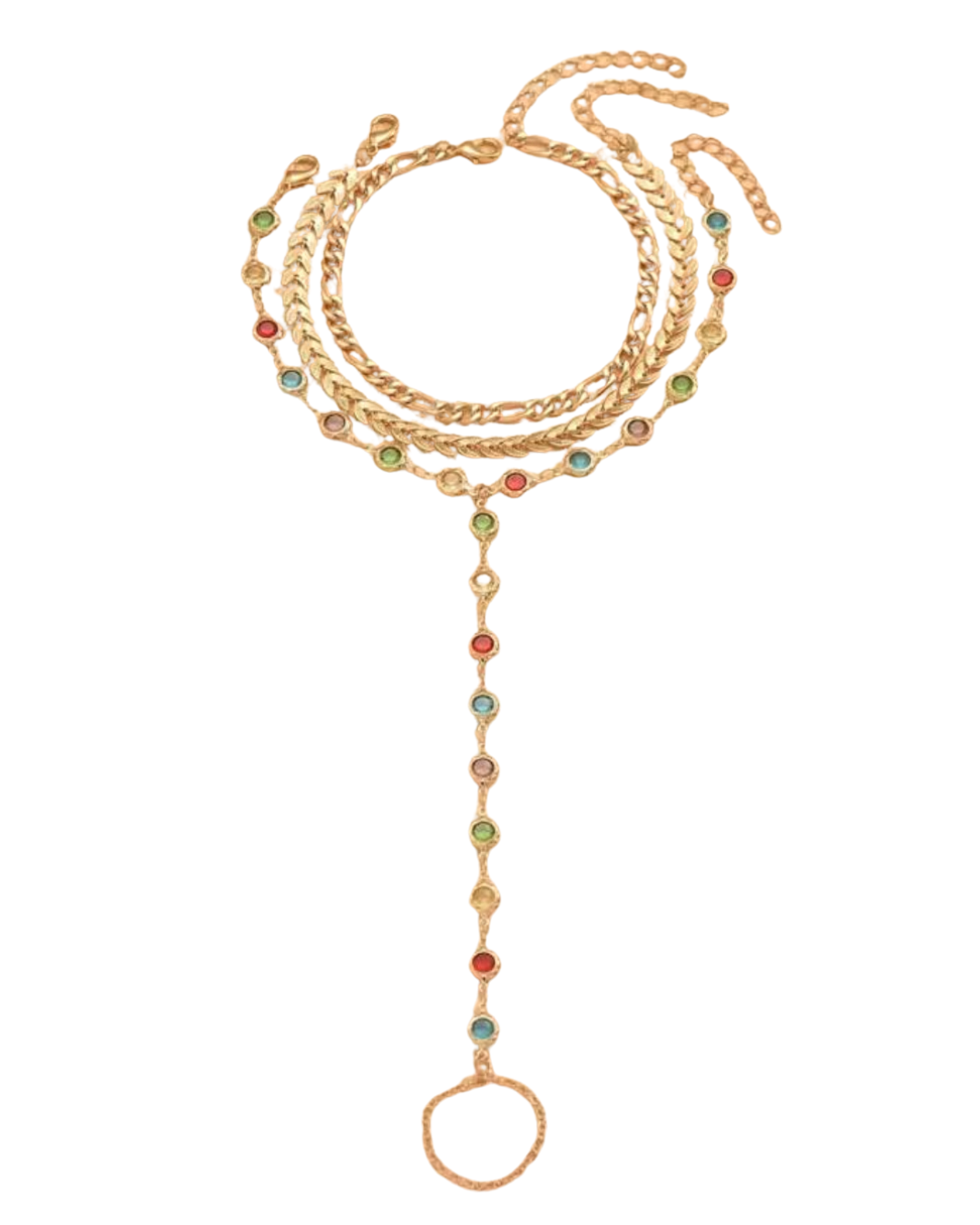 - 💎 3 Pieces of Glam – Layered anklet chains + gemstone toe ring connector